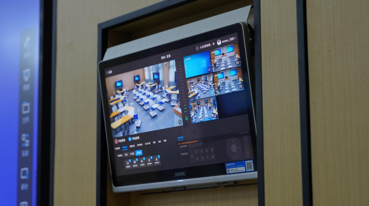值得一提的是,教室全面接入物联网控制系统。教师只需通过讲台中控面板点击“一键上课”,即可同步启动所有教学设备,并自动开启灯光、空调与窗帘;下课时间一键操作,即可完成全部设备的智能关闭,极大提升了教学效率与使用便捷性。